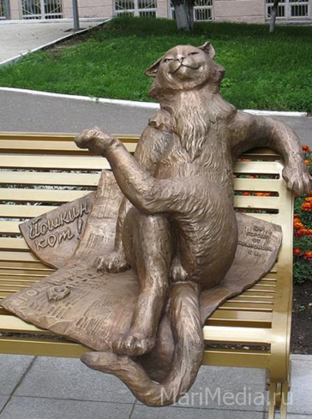 Напомним, скульптурная композиция, главный герой которой - кот - восседает на скамейке, была открыта в 23 июня 2011 года. Авторами Йошкиного кота стали художники Сергей Яндубаев и Анатолий Ширнин.