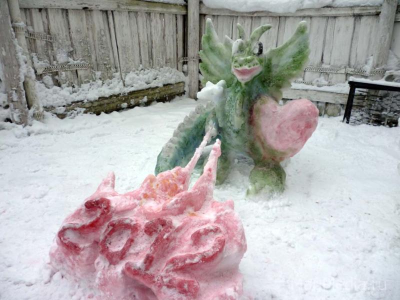 На конкурс снежных фигур, прошедший в режимных учреждениях республики, они вылепили небольшой экзотический остров с тигром-пиратом, пальмой и разукрашенным попугаем. Композиция по праву заняла второе место. Как заметили жюри конкурса, это очень неплохой результат для дебютанток. Диплом I степени вручен отряду осужденных № 1 исправительной колонии строгого режима № 6. Мужчины сотворили из снега огромное яйцо с вылупляющимся из него дракончиком. Композицию венчает маленький заяц – символ года ушедшего. На третьем месте – симпатичный дракоша, созданный скульпторами отряда № 15 исправительной колонии № 3. Возможность творчески поработать с самым доступным материалом была предоставлена всем желающим. В результате в колониях появились новые снежные обитатели, большинство из которых составили, конечно, драконы в различных ипостасях – символы наступившего года. По данным пресс-службы УФСИН по Марий Эл, такие конкурсы позволяют решить сразу несколько задач: более рационально использовать свободное время осужденных, развивать их творческие начала, выявлять скрытые доселе таланты. Есть, впрочем, у конкурса и утилитарная функция: локальные участки отрядов стали чище и наряднее.