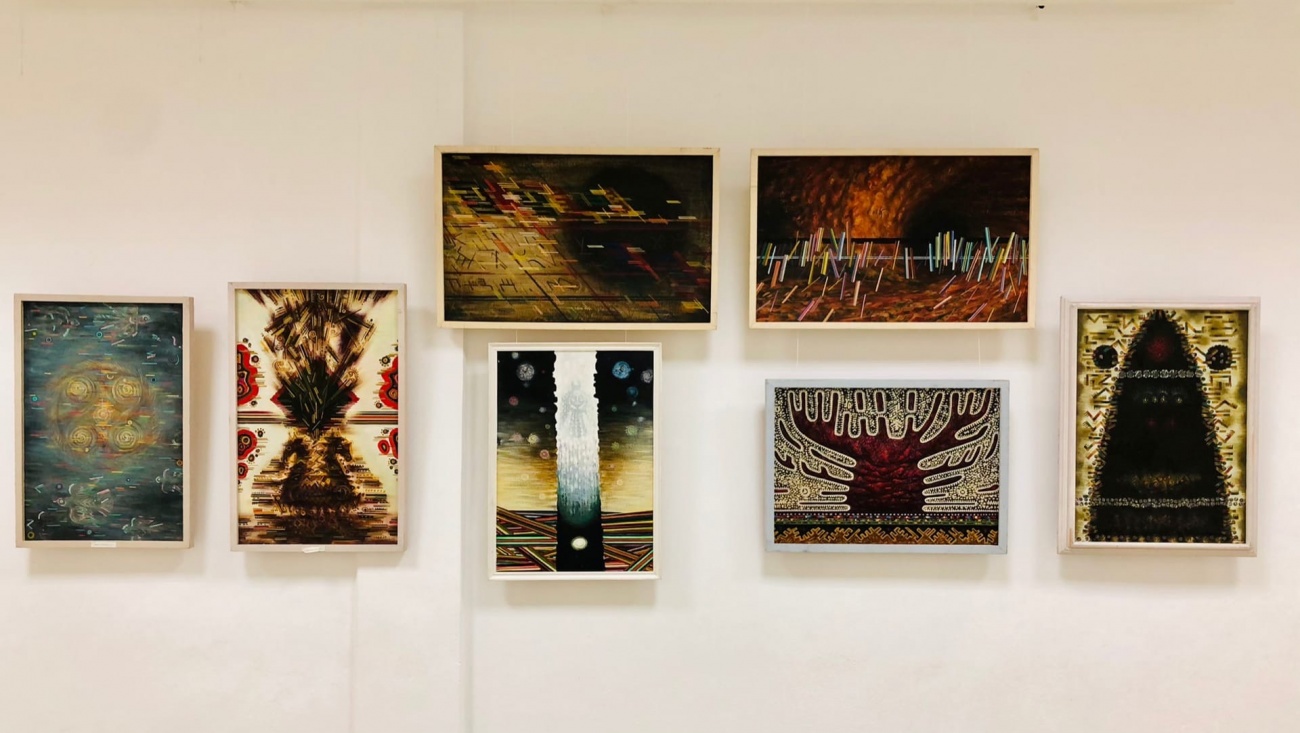Экспозицию составят этнофутуристические произведения художника. Картины охватывают временной промежуток со второй половины 90-х годов до сегодняшних дней.