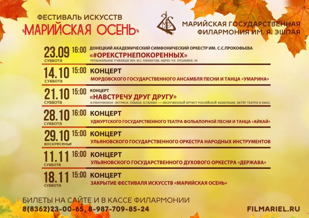 В субботу, 23 сентября, в Йошкар-Оле открывается фестиваль «Марийская осень». На открытие приглашён Донецкий академический симфонический оркестр им. С. Прокофьева с программой «#Оркестрнепокорённых».