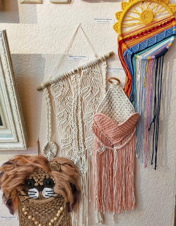 Здесь можно увидеть работы участниц городского конкурса-фестиваля. Заявки подали 37 человек. Поступило более 250 работ. Самой многочисленной стала номинация — «Интерьерная игрушка. Декор».
