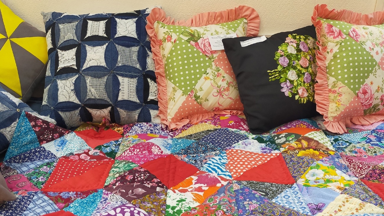 Мастерицы представили уникальные авторские вещи ручной работы. Это, например, куклы, лоскутное одеяло, выполненное в старинной технике «есенинское одеяло».