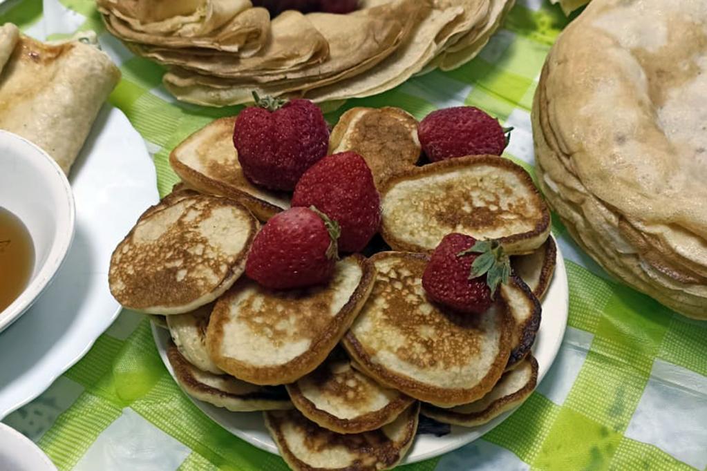 На конкурс напекли около 300 блинов. Среди кулинарных изысков было даже два блинных торта. Причём один из подготовили сторонники правильного питания. Ингредиентами для особенных блинов стали рисовая мука, миндальное молоко, яйца и сахарозаменитель, а жарились они на специальной сковороде без масла. Прослойку между блинами кулинары сделали из творога с йогуртом. Анна Смирнова, автор полезной и вкусной масленичной конструкции, награждена персональным дипломом.