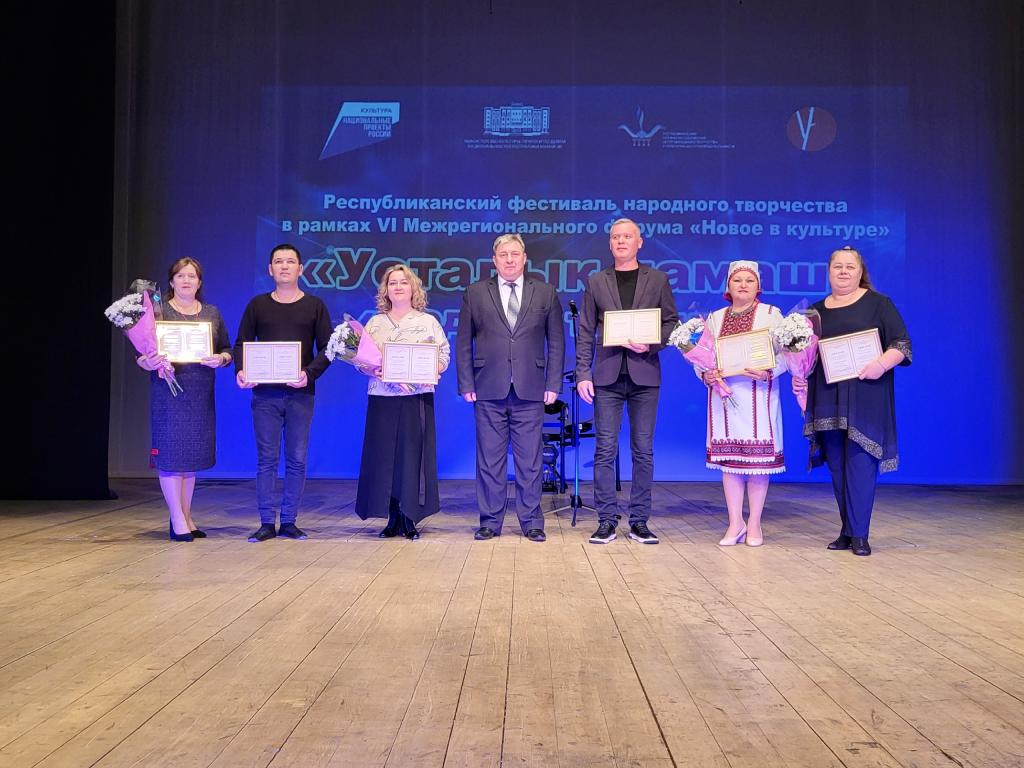 В номинации «Народный танец» отмечен балетмейстер ансамбля народного танца «Рвезылык», ансамбля танца «Самырык тукым» Александр Якушев. Руководитель народного ансамбля песни «Калинушка» Ольга Семёнова получила премию в номинации «Народное пение».