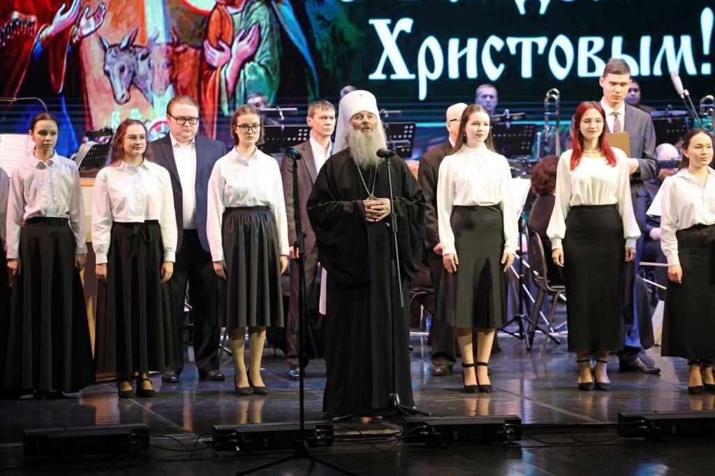 Открыл его академический хор колледжа культуры им. Палантая, исполнив рождественский тропарь, затем к зрителям с архипастырским словом обратился митрополит Иоанн.