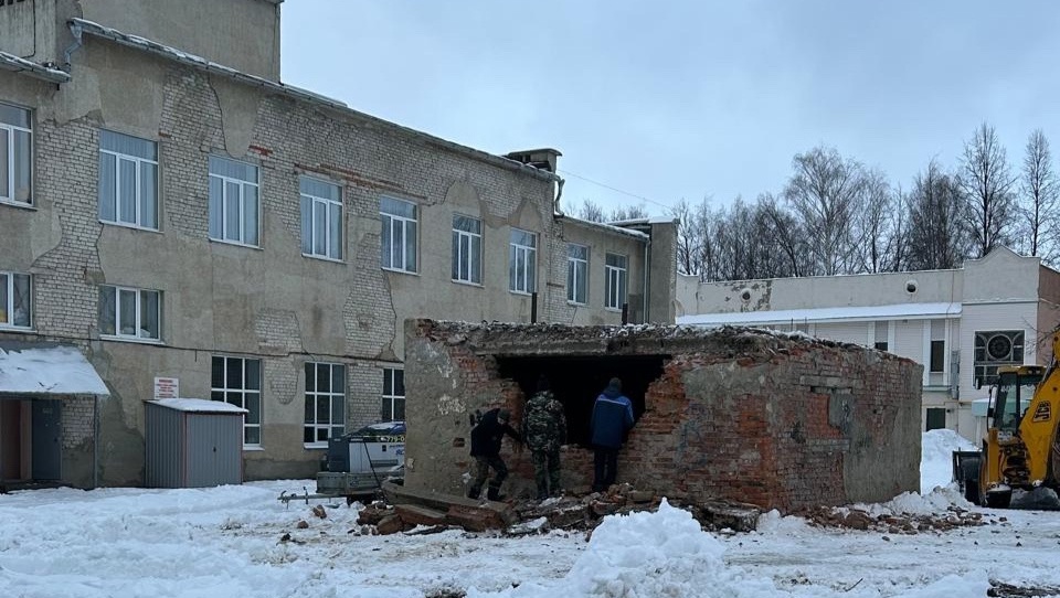 Неприглядное кирпичное строение располагалось за зданием ДК. Сегодня его наземную часть снесли.