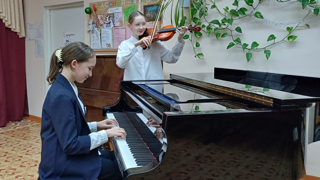 В школу приобрели рояль и пианино «Николай Рубинштейн», три балалайки, баян, три скрипки и мольберты. Юные музыканты уже успели опробовать их в деле и оценить разницу.