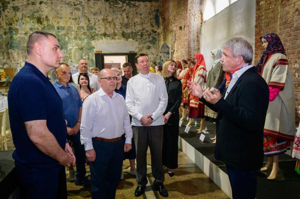 Также руководителю региона была презентована выставка «Старина нарядная», представляющая традиционные костюмы Рязанской губернии из коллекции С.А. Глебушкина.