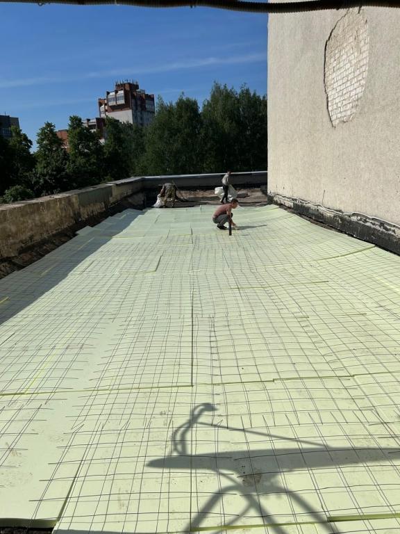 В столичной мэрии рассказали, что на одном из участков крыши в прошлом году установили современную плоскую кровлю из качественного рулонного битумно-кровельного и гидроизоляционного материала. Обновлённая крыша площадью 617 кв. м теперь надёжно защищает здание от непогоды.