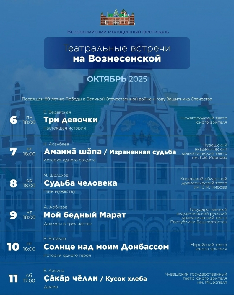 В Йошкар-Оле с 6 по 11 октября пройдёт всероссийский молодёжный фестиваль «Театральные встречи на Вознесенской».