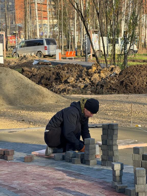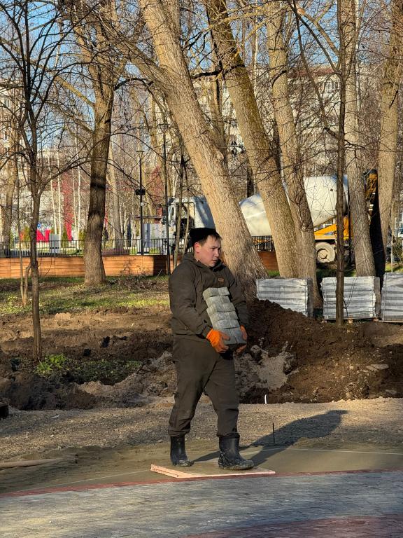 В Марий парке Йошкар-Олы укладывают брусчатку с марийским орнаментом.