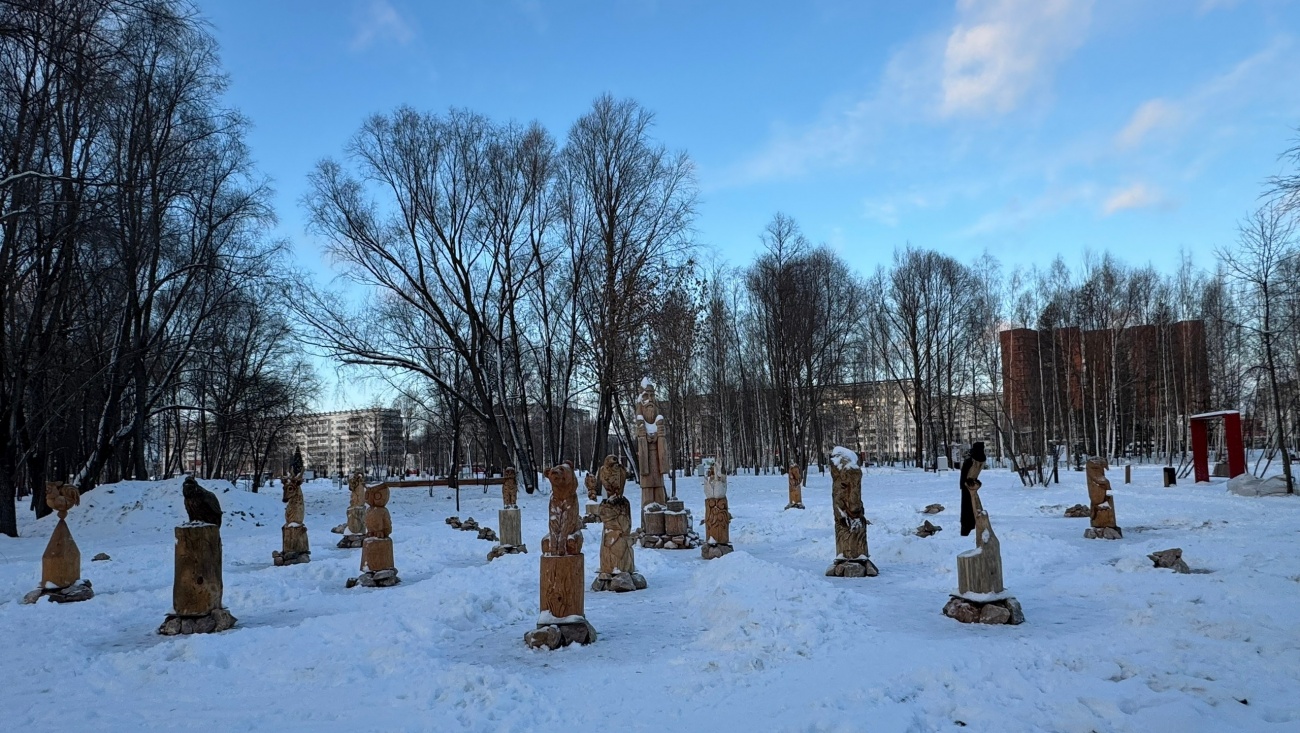 Новый арт-объект собрали из деревянных скульптур фестиваля «Легенды народа мари».