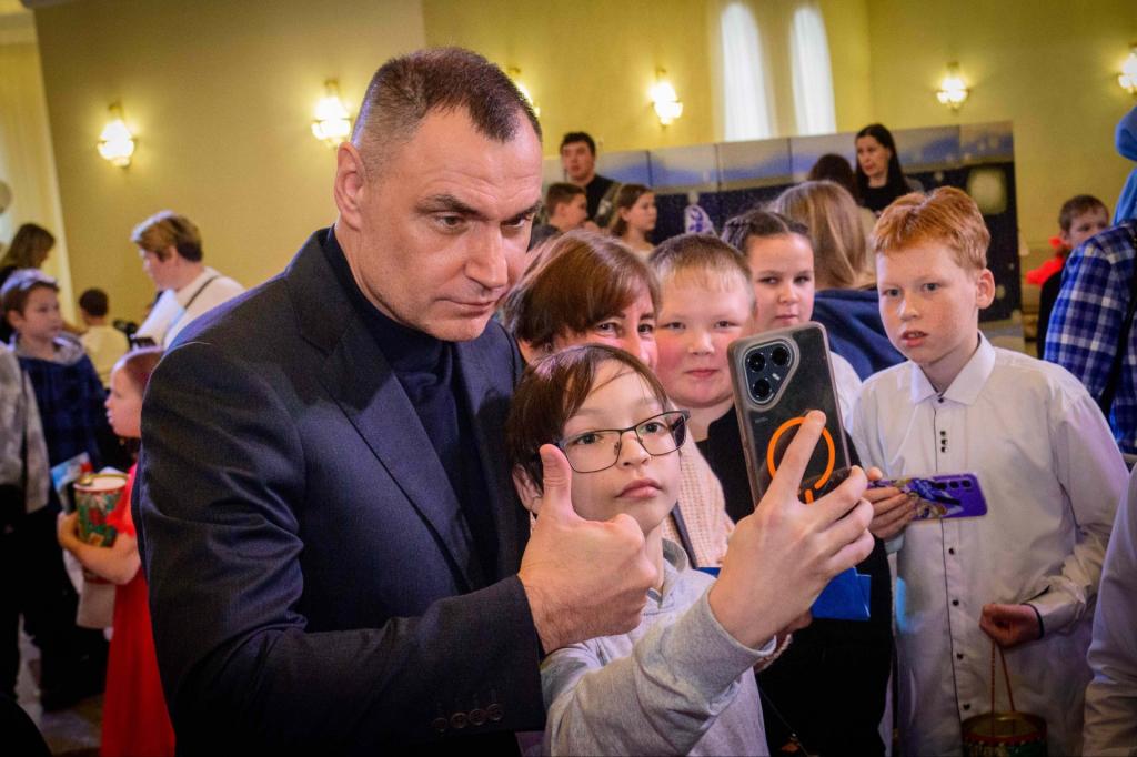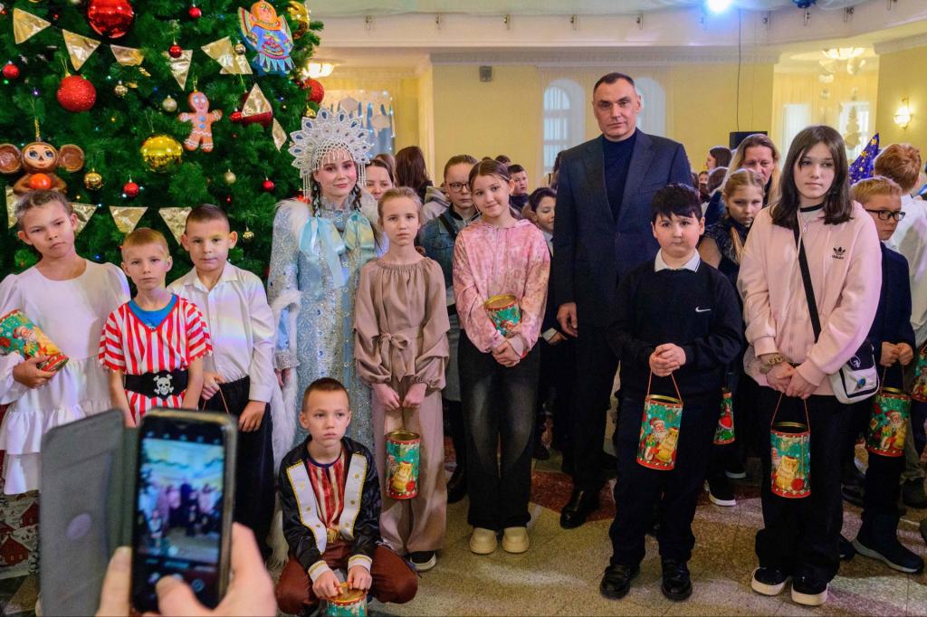 Школьники погрузились в новогоднюю интермедию «Волшебные тайны Деда Мороза». Ребят лично поздравил Юрий Зайцев.