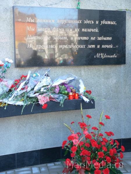 МариМедиа, 30 октября. Сегодня в Йошкар-Оле состоялось торжественное открытие мемориала жертвам политических репрессий. В мероприятии приняли участие дети и внуки репрессированых жителей республики, представители администрации города, министерств и ведомств, музея истории ГУЛАГа Марийской АССР, историки, краеведы, преподаватели и студенты.