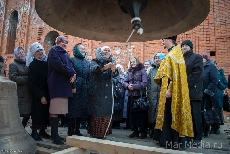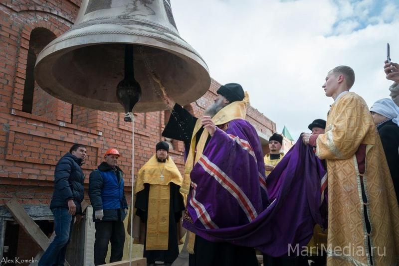 Торжественный чин освещения колоколов провел архиепископ Йошкар-олинский и Марийского Иоанна. В своей проповеди он подчеркнул, что восстановление этого храма имеет особый смысл. До революции он находился на территории женского монастыря, где воспитывались девочки-сироты, которые в последствии стали учителями сельских школ, где велось просвещение жителей марийского края. К тому же в этом году православные отмечают 700-летие преподобного Сергия Радонежского и один из пределов восстанавливаемой церкви будет посвящен этому православному святому.