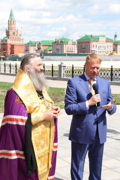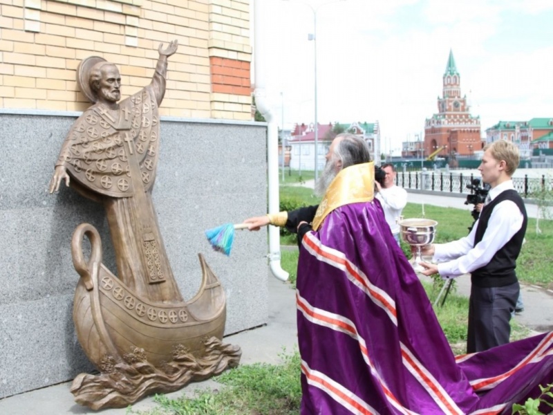 МариМедиа, 20 июня. Чин освящения барельефа святителю Николаю Мирликийскому, Чудотворцу совершил архиепископ Йошкар-Олинский и Марийский Иоанн. После освящения и окропления памятника святой водой Владыка обратился к присутствующим со словами: «На Руси нет ни одного храма и ни одного дома, где бы не был святой образ Николая Чудотворца. Сегодня на нашей набережной водружается его образ, что бы каждый отправляющийся в путешествие, имеющий скорбь, имеющий болезнь, проходя по этой набережной обратил свой молитвенный взор к святителю Николаю, и, получив от него милости вновь и вновь пришел сюда и возблагодарил его. Пусть святитель Николай украшая своим образом наш город осеняет его своим благословением...».