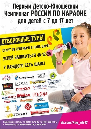 «19 октября тем, кому так и не удалось побывать в Папа-баре, будет дан последний шанс принять участие в дополнительном прослушивании. Особенно, хочу пригласить мальчиков и юношей в возрасте от 12 до 17 лет. Их нам катастрофически не хватает. Но эти ребята должны быть готовы к тому, что, пройдя прослушивание, они сразу примут участие в полуфинале. Поэтому подготовить номер к выступлению необходимо заранее», — прокомментировала ИА «МариМедиа» организатор конкурса Мария Оленина.