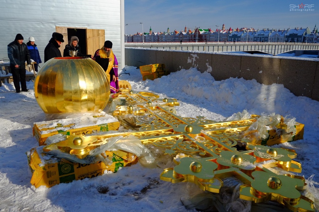 Перед поднятием их освятил архиепископ Йошкар-Олинский и Марийский Иоанн. В мероприятии принял участие Глава Марий Эл Леонид Маркелов.