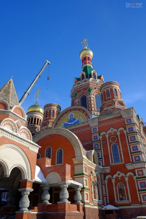 МариМедиа, 27 октября. Сегодня в 11:00 произошло знаменательное событие для Йошкар-Олинской и Марийской епархии. На строящийся кафедральный собор в честь Благовещения Пресвятой Богородицы на площади Пресвятой Девы Марии в Йошкар-Оле подняли купола с крестами.