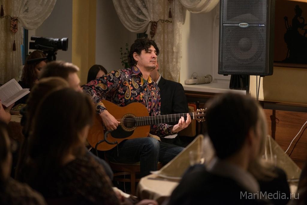 МариМедиа, 13 января. Чтение рассказов из цикла «Темные аллеи» в рамках проекта сайта Marimedia.ru прошло накануне вечером в йошкар-олинском кафе «Онегин House». Гости с упоением прослушали три произведения - «Кавказ», «Муза» и «Натали» - в исполнении десяти заявившихся чтецов: журналистов, актеров, теле- и радиоведущих, преподавателей, а также самых простых ценителей классики. Чтение сопровождалось импровизацией на аккустической гитаре в исполнении Петра Фиронова.