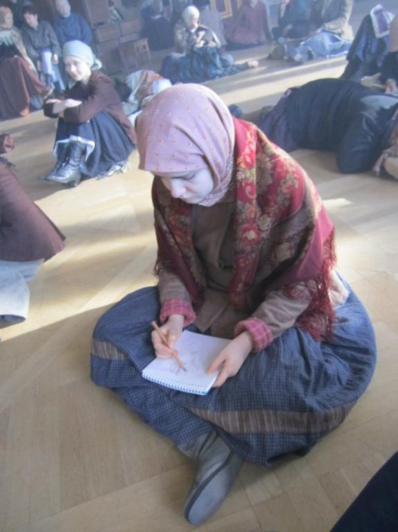 С.М.: Знаете, это мой первый опыт съемок в массовке, да и вообще в кино, но - не последний! Как и любой вид искусства, кино затягивает. В тот момент, когда я узнала о наборе, съемки проходили в Пушгорах под Псковом. Это были буквально последние недели батальных сцен. Я как раз ушла с предыдущего места работы и искала для себя что-то новое. Я люблю авантюры и давно мечтала побриться налысо, так, с легкой руки моих подруг, через полтора дня после звонка бригадиру, я оказалась на съемочной площадке.