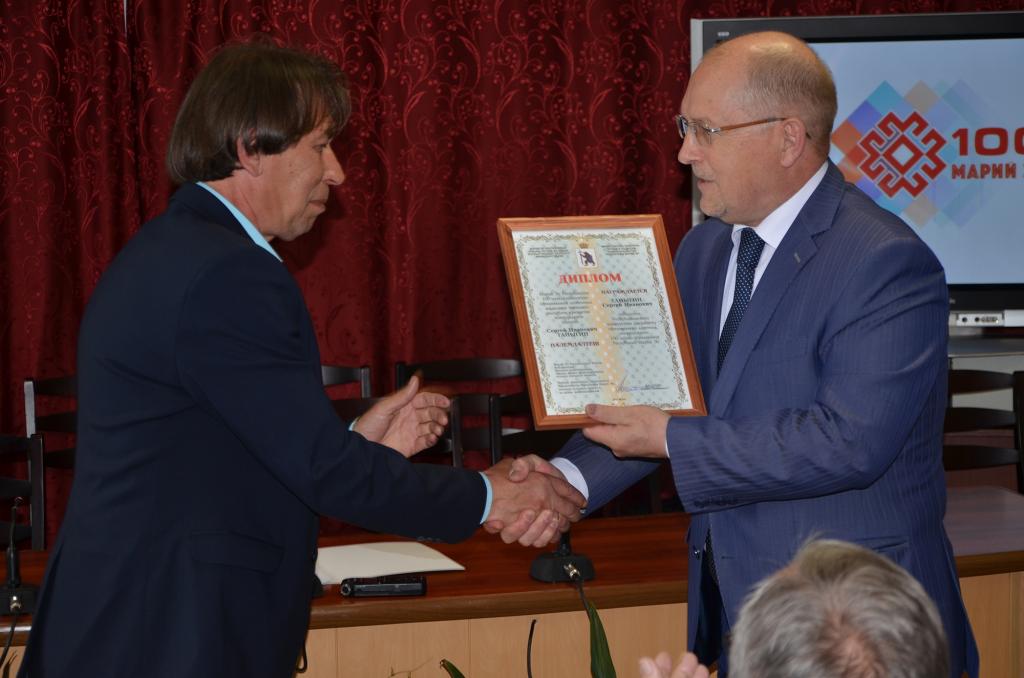 Комиссия выбрала вариант художника Сергея Таныгина, за основу его логотипа был взят элемент национального марийского орнамента.