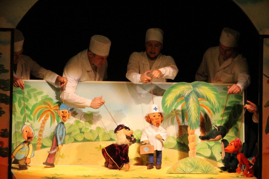 Сегодня в Республиканском театре кукол состоялось благотворительное мероприятие, посвященное Дню знаний, для детей с ограниченными возможностями здоровья и детей, попавших в трудную жизненную ситуацию. Ребят встречали сказочные герои, вовлекая их в праздничную атмосферу, а затем артисты театра подарили им музыкальную сказку «Айболит».