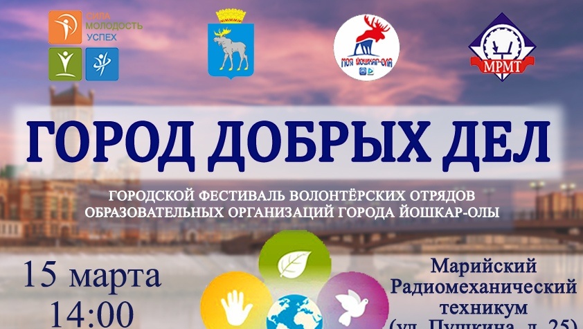 15 марта в столице Марий Эл состоится Фестиваль волонтёрских отрядов образовательных организаций Йошкар-Олы — «Город добрых дел». Площадка проведения — Марийский радиомеханический техникум, сообщает пресс-служба горадминистрации.