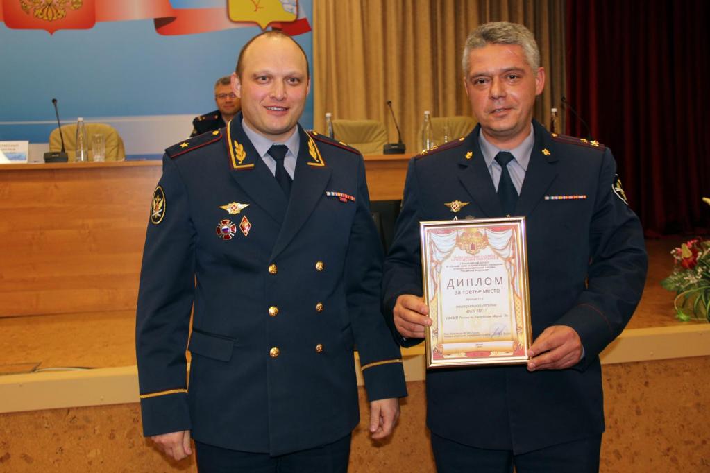 Почётный диплом за третье место заместителю начальника УФСИН России по Республике Марий Эл Евгению Швецову вручил начальник Управления воспитательной, социальной и психологической работы ФСИН России Александр Матвеенко.