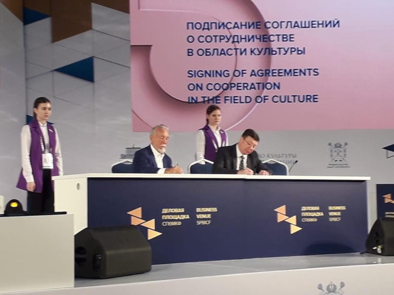 В рамках Международного культурного форума, который в эти дни проходит в Санкт-Петербурге, министр культуры, печати и по делам национальностей Республики Марий Эл Константин Иванов и директор Государственного Русского музея Владимир Гусев подписали соглашение о сотрудничестве.
