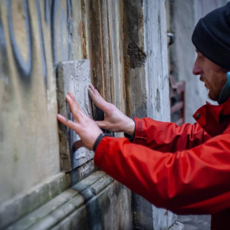 В Санкт-Петербурге появился уникальный стрит-арт, заметить который не так-то просто. Уличное искусство может быть разным, инструмент художника — не только трафарет и баллончик с краской. Студент академии Штиглица Кирилл Романов использует классическую технику сграффито, а своей задачей называет украшение города.