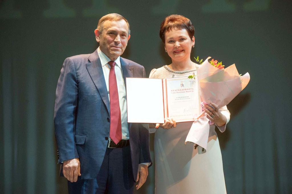 Благодарность Главы Республики Марий Эл объявлена артистке Государственного оркестра народных инструментов «Марий кундем» Алене Потаповой, заместителю директора по хозяйственной работе Марийской государственной филармонии им.Якова Эшпая Сергею Яндемирову, заведующему художественно-постановочной частью Государственного ансамбля танца «Марий Эл» Лилии Самойловой и артисту балета ансамбля Алексею Поликанову.