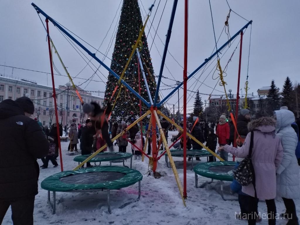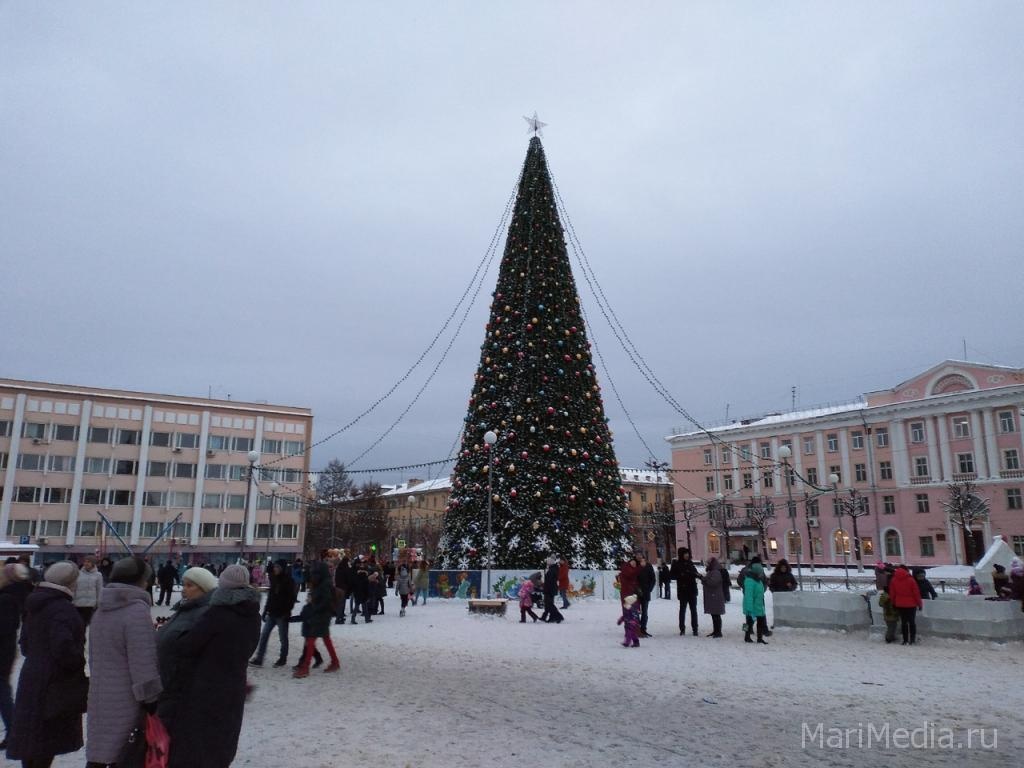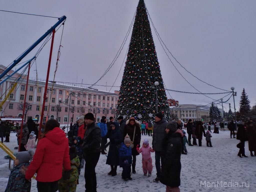 Вечером яркими огнями загорается главная ёлка Марий Эл, иллюминация на площади создаёт праздничное настроение. Безопасность отдыхающих обеспечивают наряды полиции.