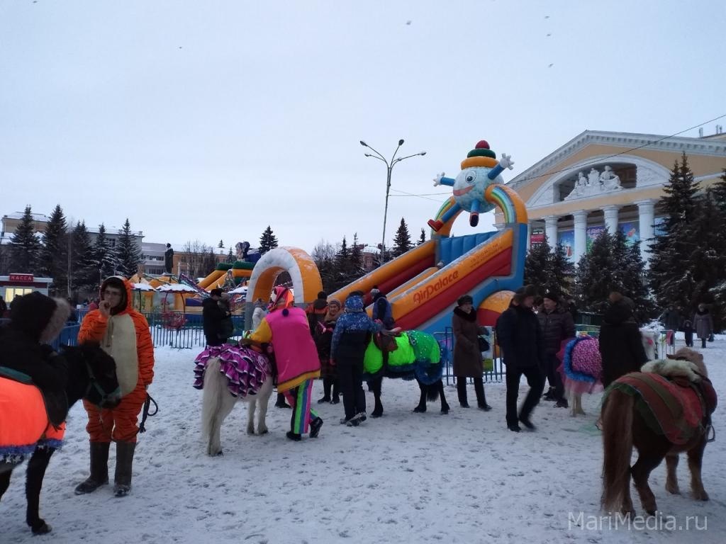 Ежедневно десятки людей собираются на площади им. В. Ленина в Йошкар-Оле. Для жителей и гостей столицы на площади организованы культурно-массовые мероприятия. Кроме того, дети могут покататься на лошадях, паровозике, попрыгать на батутах, покататься на качелях. И взрослые, и дети с удовольствием бродят по ледяному лабиринту, чтобы выйти к главной фигурке, символу Нового года — ледяной Крысе.
