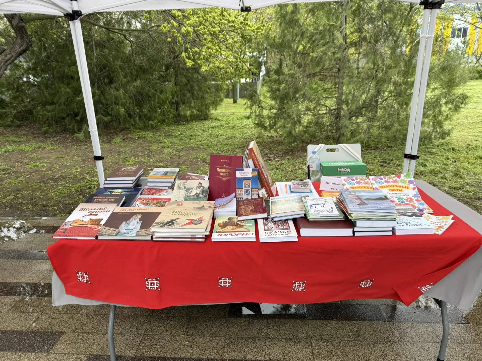 На празднике принимает участие Марийское книжное издательство. Как отмечают представители учреждения, их книги «пережили» здесь и степной ветер, и дождь, и град. Но душевное тепло организаторов помогает справиться со всеми капризами погоды.