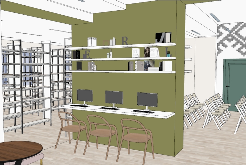 Проектом предполагаются и некоторые новшества. Так, в фойе будет организована кафедра регистрации читателей. А чтобы получать книги без очереди, запустят станцию самостоятельной книговыдачи. Кроме этого, в семейной библиотеке появятся кинозал, зона вдохновения и чтения, пространство для компьютерного дизайна.