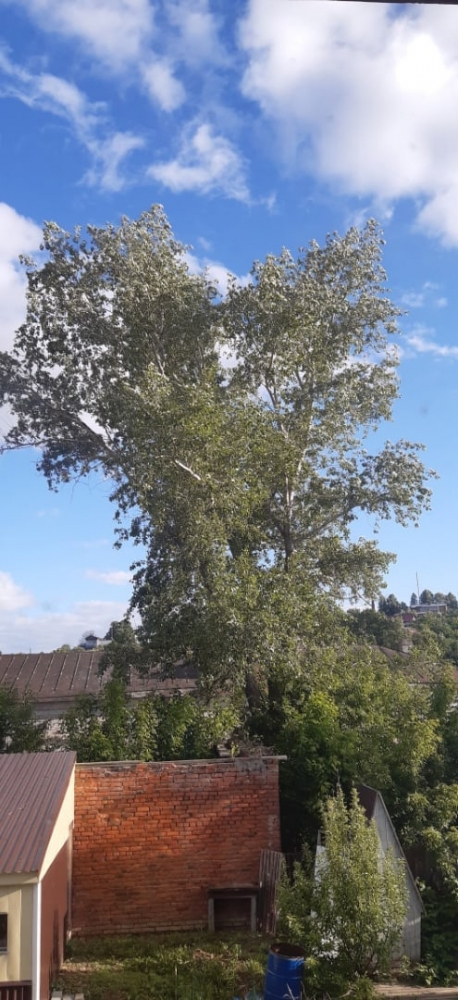 «Спилить можно, если подойти с умом. Дерево может рухнуть само не только на близлежащие постройки (сараи) но и на жилой дом».