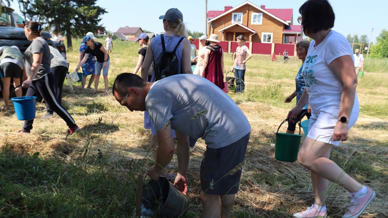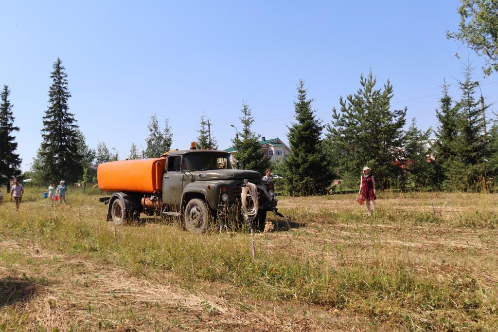 Инициативу подхватили неравнодушные жители посёлка. Спасать зелёные насаждения от жары вышли около 50 человек. С водой помогла пожарно-спасательная часть. Специально для этих целей к роще была направлена пожарная машина.