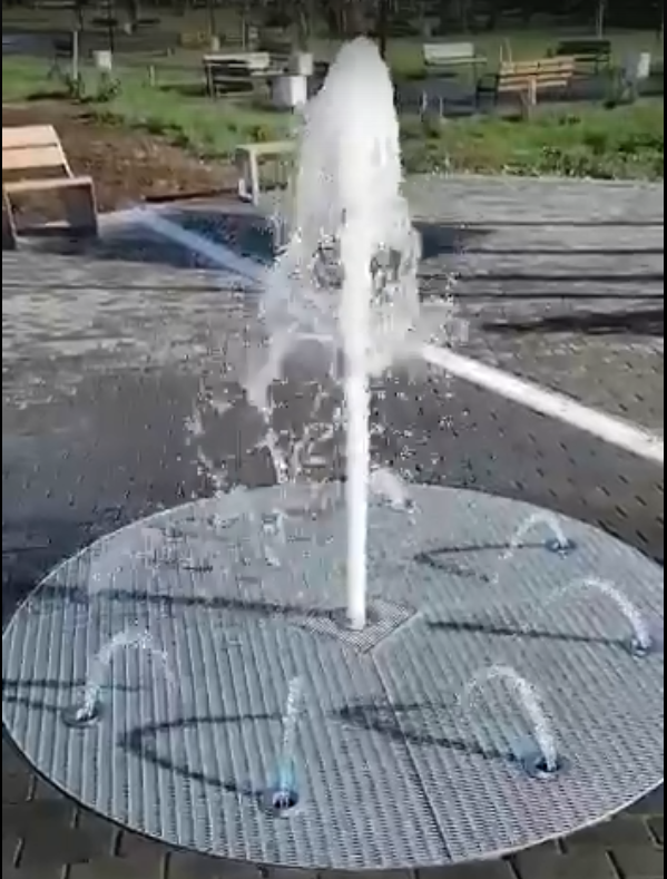 На днях на объекте было проведено пробное включение сухого фонтана. Водная чаша таких сооружений находится не на поверхности — она скрыта под землей.