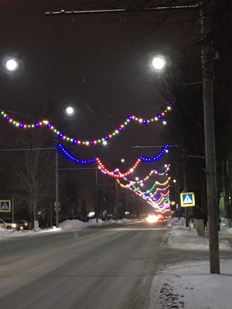 Главная улица населённого пункта — улица Советская уже засверкала праздничной иллюминацией, пишет издание «Вести».