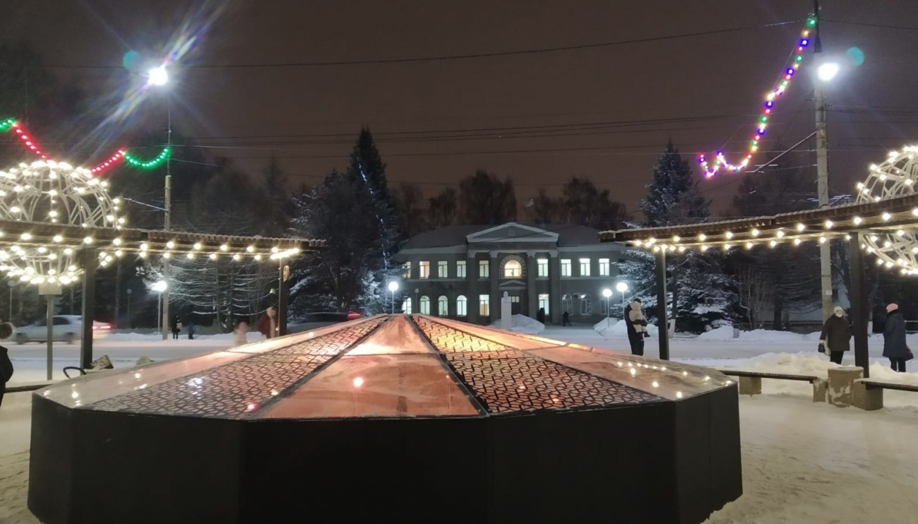 Из него здесь сделали настоящий праздничный арт-объект, украшенный сверкающей иллюминацией.