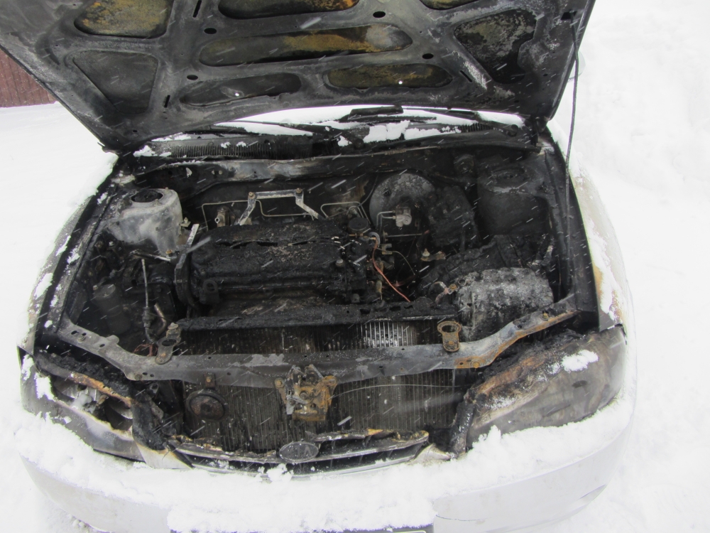 В результате происшествия огнём уничтожен двигательный отсек машины, под воздействием высокой температуры произошло оплавление внутренней отделки салона.