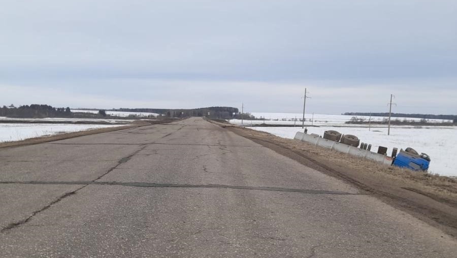 В Сернурском районе на сельской дороге перевернулся грузовик