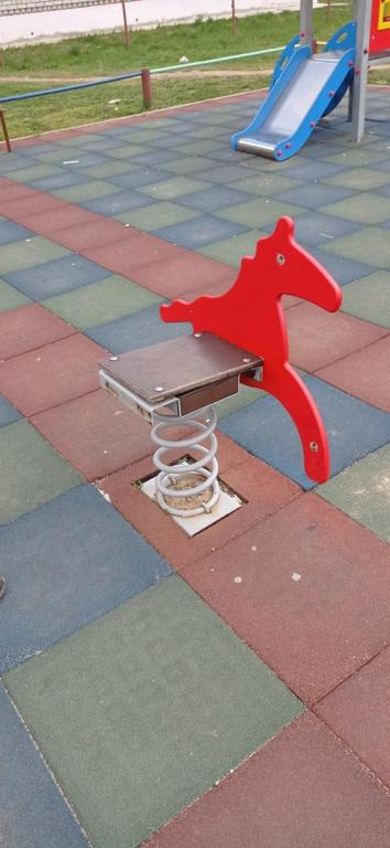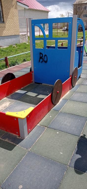 Для отдыха детей здесь закупили новые игровые элементы, установили специальное покрытие. Малыши ещё не успели наиграться на площадке, зато вандалы уже успели приложить и сюда свои руки.
