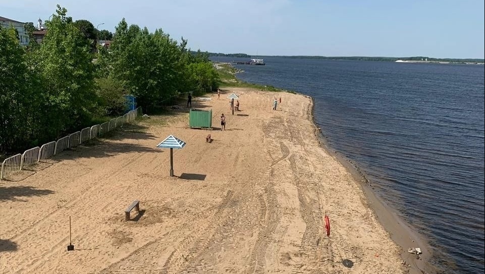 Перед началом сезона провели водолазное обследование и очистили дно реки Волги. А для благоустройства пляжа был завезён песок.
