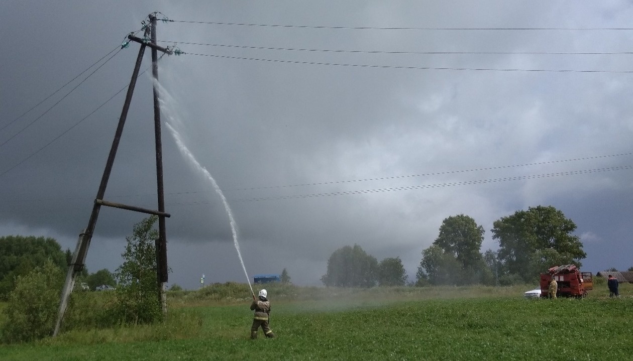 В результате происшествия повреждены соединительные зажимы на ЛЭП. Причиной возгорания стало короткое замыкание.