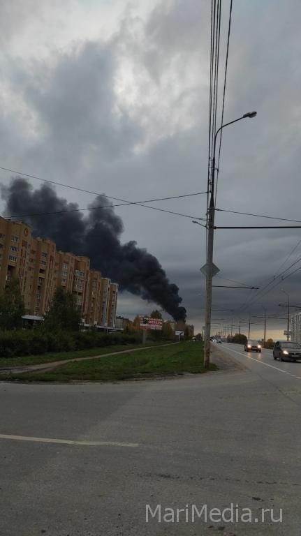 В редакцию ИА МариМедиа поступили фотографии — пожар в Медведево. Чёрные клубы дыма поднимается в небо.