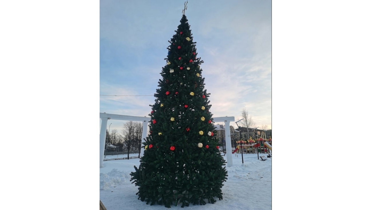 В Козьмодемьянске установили главную городскую новогоднюю ель. Традиционно она украсила техносквер «Сияние».