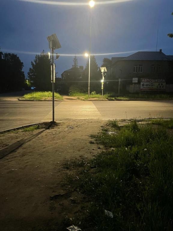 Так, плафон со светодиодной лампой мощностью 100 ватт размещён на опоре уличного освещения на перекрёстке улиц Быстрова и Российского. Он освещает тротуар и пешеходный переход в тёмное время суток.