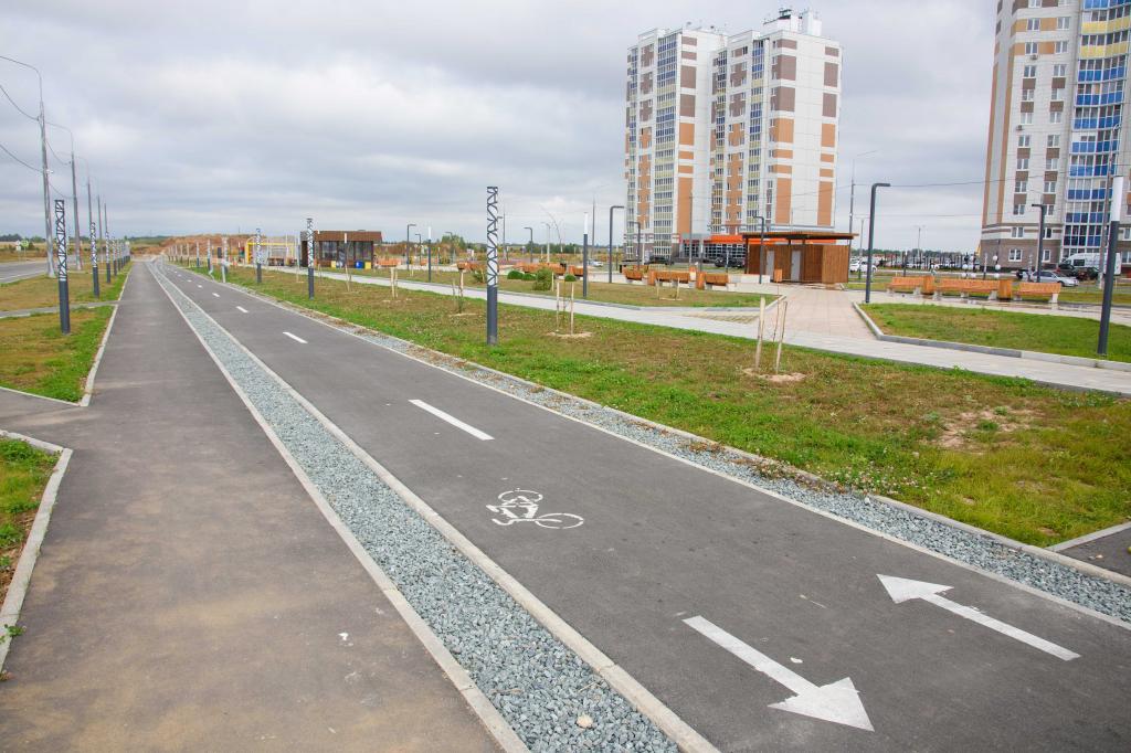 Вдоль бульвара с обеих сторон обустроены асфальтобетонные проезды и гостевые парковочные места, выделены велосипедные дорожки.